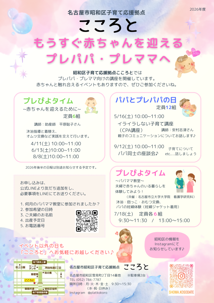 | 【会場】 | 昭和区子育て応援拠点こころと (昭和区雪見町2丁目14番地) |